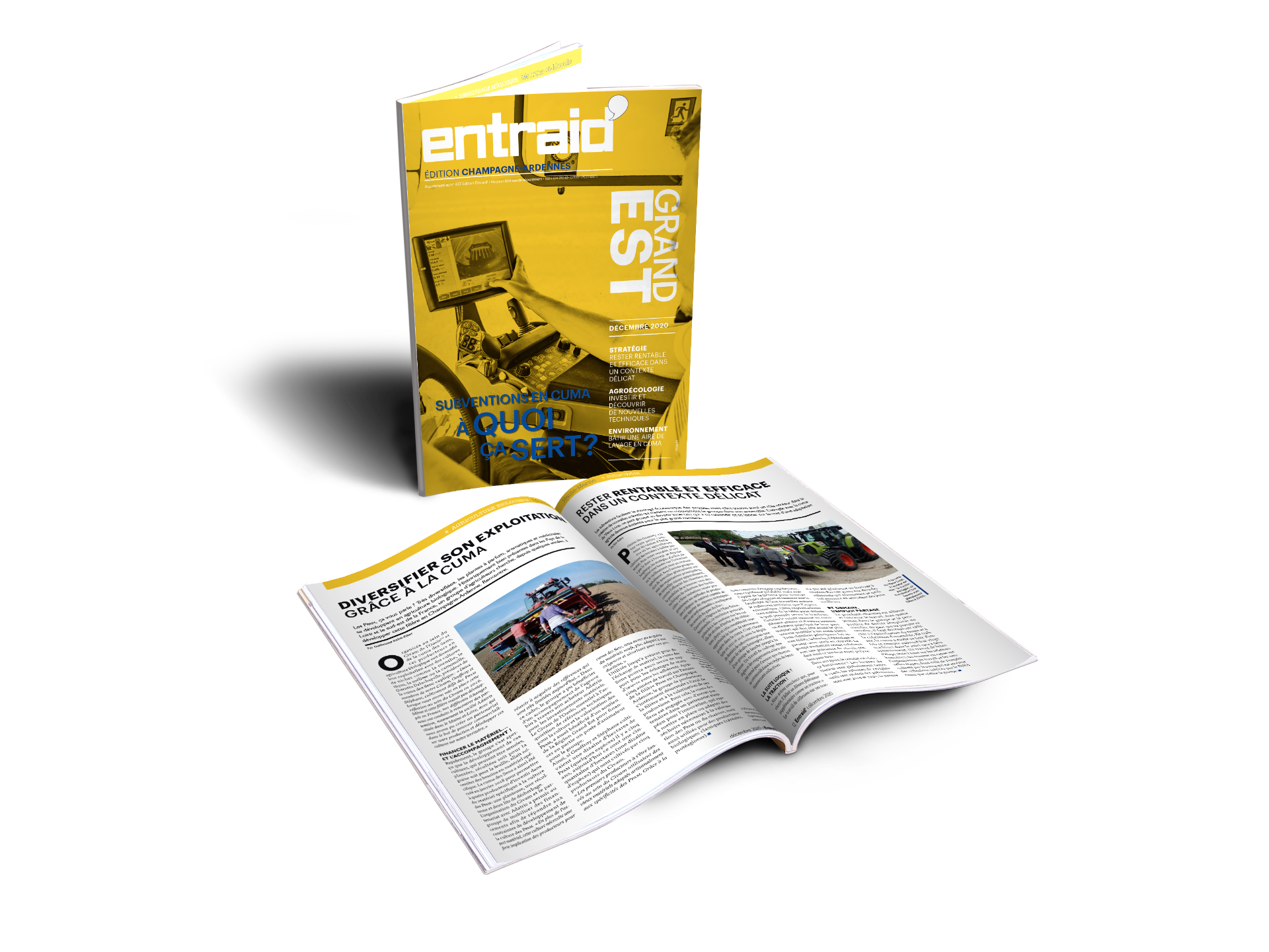 Entraid' éditera en Décembre 2024, en partenariat avec la fédération régionale des cuma du Grand Est une édition spéciale à l'échelle de la région. 3 déclinaisons seront proposées aux annonceurs (Alsace, Lorraine et Champagne-Ardennes), leur permettant de communiquer sur toute la région, ou uniquement sur les zones souhaités. Pour cette édition, les contenus seront réalisés localement, avec pour objectif de témoigner de l'effet du groupe dans les choix personnels d'un agriculteur, que ce soit dans l'orientation de son exploitation, ou dans la conversion vers de nouveaux modes de production. En tant qu'animatrice de ces démarches collectives, la fédération des cuma du Grand Est est associée à la construction de ces éditions, et contribue directement à la création de ses contenus.